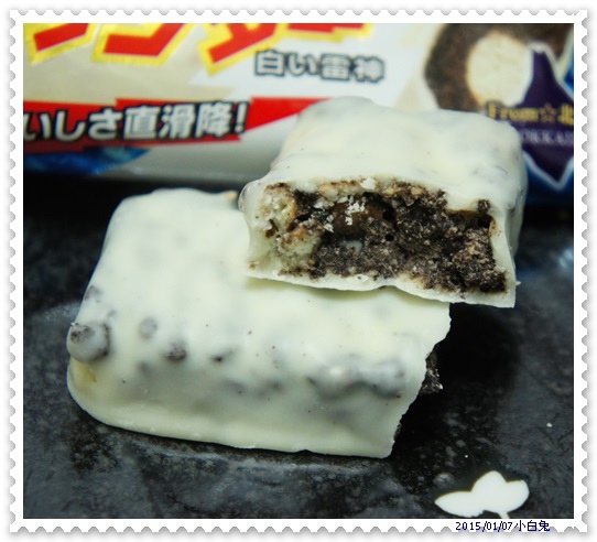 白雷神巧克力吃起來不會很甜,雖然裡頭的內餡跟黑雷神巧克力差不多,但是小兔覺得它比黑雷神巧克力好吃多了